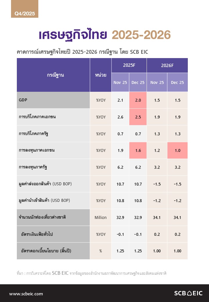 ทำไมเศรษฐกิจไทยปี 2569 อาจโตต่ำสุดในรอบ 30 ปี (ไม่นับช่วงวิกฤต)? SCB EIC ชวนหาคำตอบผ่าน 7 คำถามสำคัญ
