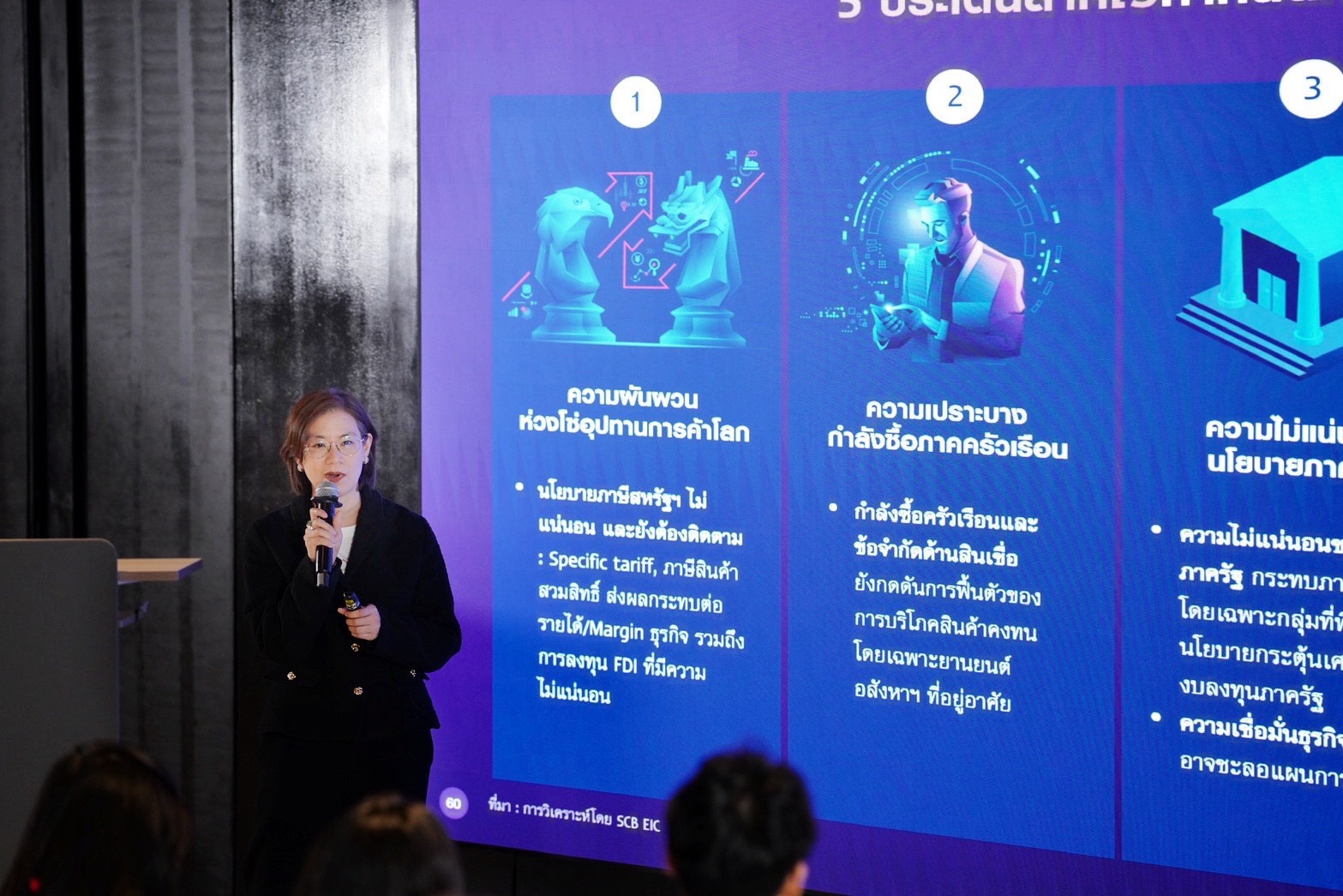 - ธุรกิจไหนไปต่อได้ ปรับตัวอย่างไรให้อยู่รอด? ทิศทางธุรกิจไทยจะถูกขับเคลื่อนบนความท้าทาย 5 ด้าน คือ ความผันผวนของห่วงโซ่อุปทานการค้าโลก, กำลังซื้อภาคครัวเรือนที่เปราะบาง, ความไม่แน่นอนของนโยบายภาครัฐ, การแข่งขันรุนแรงในประเทศและต่างประเทศ และแรงกดดันจากเมกะเทรนด์ ภาพรวมธุรกิจ