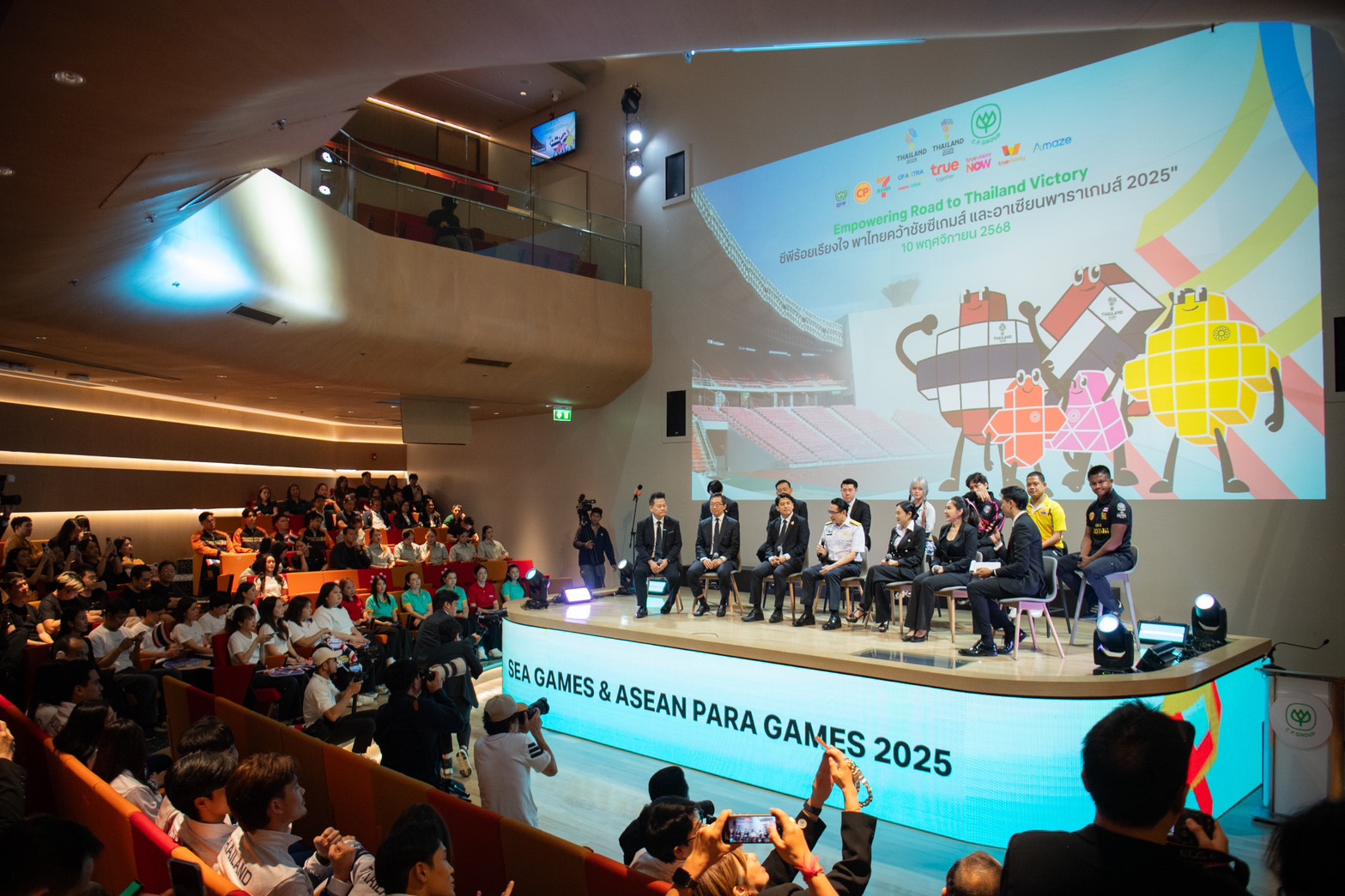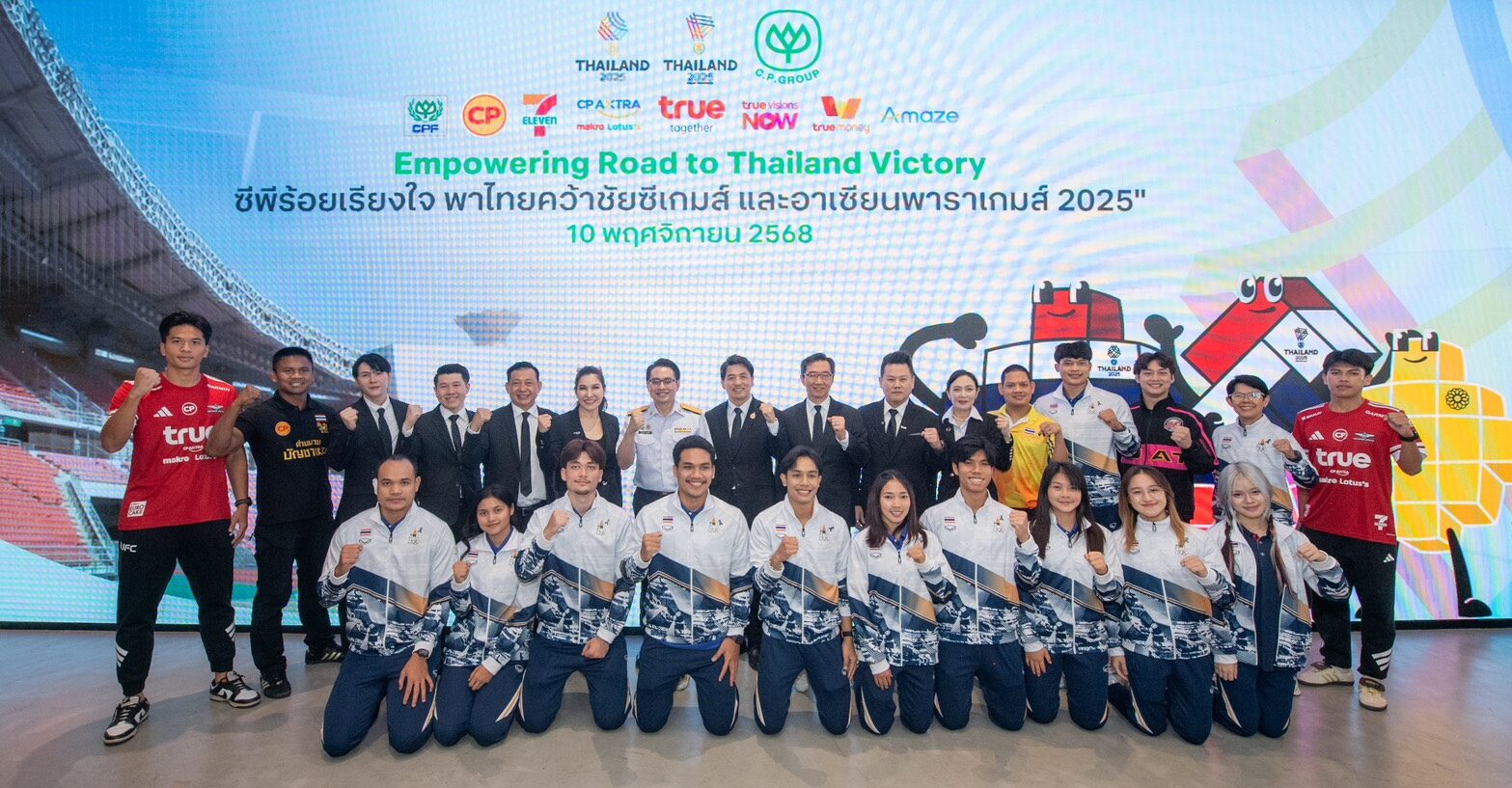 ทั้งนี้ ได้รับเกียรติจาก ดร.ก้องศักด ยอดมณี ผู้ว่าการการกีฬาแห่งประเทศไทย ร่วมในการ Kick off ครั้งสำคัญของซีพีและบริษัทในเครือ  โดยมี ดร.ธีระพล ถนอมศักดิ์ยุทธ ประธานคณะผู้บริหารด้านความยั่งยืนองค์กรและการพัฒนากลยุทธ์ เครือเจริญโภคภัณฑ์ และผู้บริหารจากกลุ่มธุรกิจต่าง ๆ ในเครือฯ ได้แก่ นางสาวอนรรฆวี ชูรัตน์ ผู้บริหารสูงสุด สายงานการตลาดกลาง บริษัท เจริญโภคภัณฑ์อาหาร จำกัด (มหาชน), นายสุชาติ วัฒนา ผู้ช่วยกรรมการผู้จัดการ สายงานการตลาด บริษัท ซีพี ออลล์ จำกัด (มหาชน), นางศิริพร เดชสิงห์ ประธานเจ้าหน้าที่บริหาร สายงานความยั่งยืนและสื่อสารองค์กร บริษัท ซีพี แอ็กซ์ตร้า จำกัด (มหาชน), นายโอลิเวอร์ กิตติพงษ์ วีระเตชะ หัวหน้าคณะผู้บริหารด้านแบรนด์และมีเดีย บริษัท ทรู คอร์ปอเรชั่น จำกัด (มหาชน), นายองอาจ ประภากมล หัวหน้าผู้บริหาร หน่วยงานทรูวิชั่นส์ และมีเดีย  บริษัท ทรู คอร์ปอเรชั่น จำกัด (มหาชน), นายกรกฤต เมฆบุญส่งลาภ ผู้อำนวยการฝ่ายความสำเร็จทางธุรกิจของพันธมิตร บริษัท ทรูมันนี่ จำกัด และ นายภูมิชนัตถ์ เรืองชัยนันท์ ประธานเจ้าหน้าที่บริหารฝ่ายกลยุทธ์และข้อมูล Amaze Super App ร่วมกันประกาศการเป็น Group Main Sponsor ในมหกรรมกีฬาที่ยิ่งใหญ่ของภูมิภาค “ซีเกมส์ และอาเซียนพาราเกมส์ 2025” พร้อมแสดงเจตนารมณ์ในการสนับสนุนการแข่งขัน ทั้งด้านอาหาร โครงสร้างพื้นฐานด้านดิจิทัลและการสื่อสารครอบคลุมทุกพื้นที่การแข่งขัน ระบบการเงินอัจฉริยะ ช่องทางการถ่ายทอดสดตลอดการแข่งขัน และบริการต่าง ๆ เพื่อสนับสนุนประเทศไทยในการเป็นเจ้าภาพการแข่งขันซีเกมส์และอาเซียนพาราเกมส์อย่างสง่างาม พร้อมเชิญชวนคนไทยทั้งประเทศร่วมเชียร์ และส่งกำลังใจให้ทัพนักกีฬาไทย คว้าชัยชนะในซีเกมส์และอาเซียนพาราเกมส์