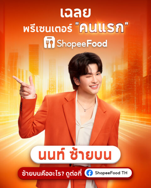 แม้ว่า Shopee จะเป็นแพลตฟอร์มอีคอมเมิร์ซที่ผู้บริโภคชาวไทยคุ้นเคยเป็นอย่างดี แต่ยังมีผู้ใช้งานจำนวนไม่น้อยที่อาจยังไม่ทราบว่า ภายในแอปเดียวกันยังมีบริการ ShopeeFood ที่เปิดโอกาสให้สั่งอาหารจากร้านอาหารยอดนิยมได้อย่างง่ายดาย การร่วมงานกับ นนท์ ธนนท์ ในครั้งนี้จึงมีเป้าหมายเพื่อช่วยสื่อสารและสร้างการรับรู้ให้ผู้บริโภคเข้าใจว่า แอป Shopee ไม่ได้เป็นเพียงแพลตฟอร์มสำหรับการช้อปปิ้งสินค้าเท่านั้น แต่ยังมีบริการด้านไลฟ์สไตล์อย่างการสั่งอาหารที่ตอบโจทย์การใช้ชีวิตประจำวันได้ในแอปเดียว แถมยังสร้างภาพจำเพื่อตอกย้ำผู้ใช้งานว่า ShopeeFood อยู่ซ้ายบนในแอป Shopee ผ่านฉายาใหม่จาก นนท์ ธนนท์ เป็น นนท์ ซ้ายบน