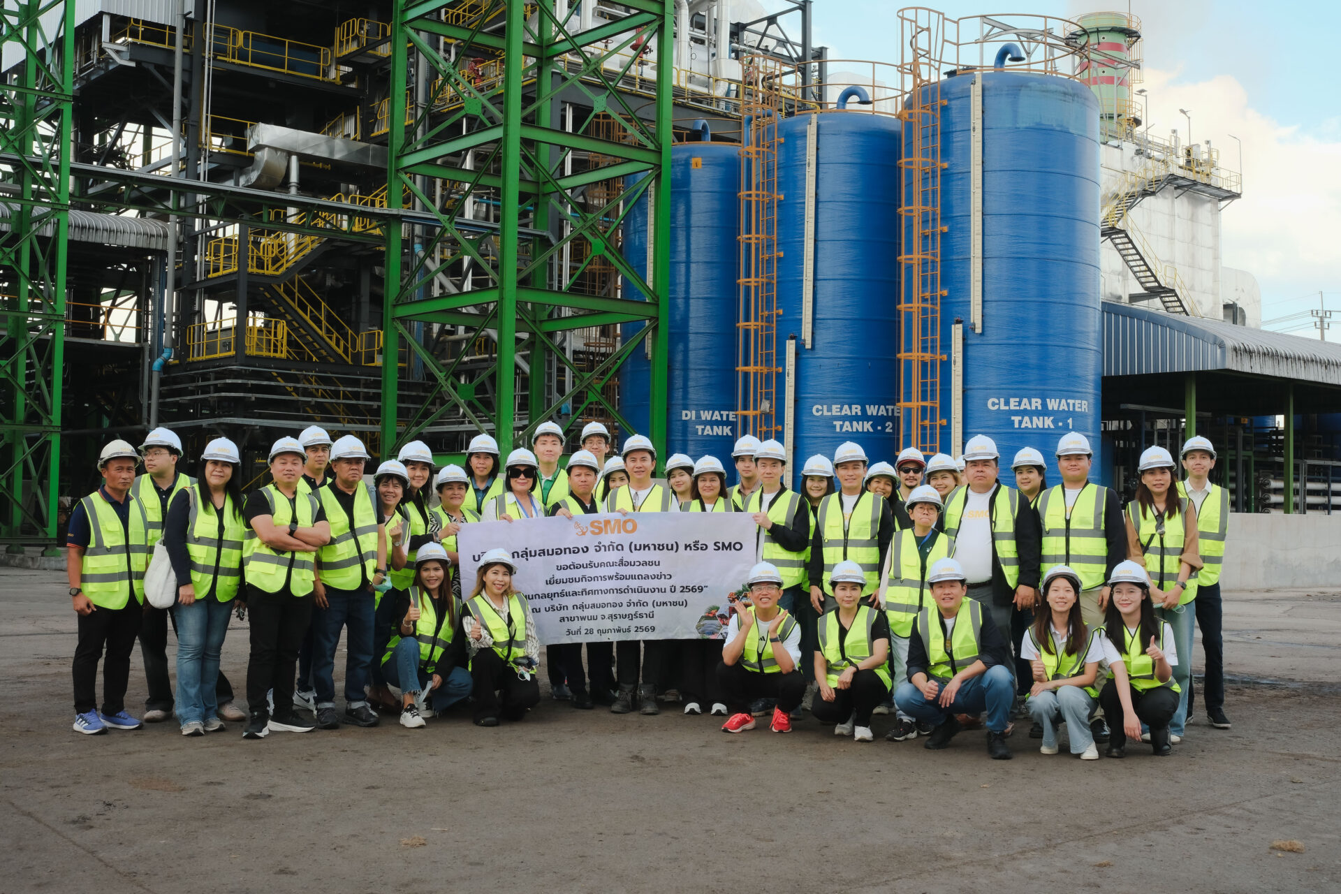 นายกิตติพงษ์ พวงมาลา ประธานเจ้าหน้าที่บริหาร นายกุศล ศรีเปารยะ ประธานเจ้าหน้าที่บริหารการเงิน นายเสกศักดิ์ พิริเยศยางกูร กรรมการผู้จัดการสายงานโรงงาน นายโจซ์สัน ลิม กรรมการผู้จัดการสายงานนวัตกรรมและการค้าระหว่างประเทศ นายศักดา ทองรอง รองกรรมการผู้จัดการอาวุโส สายงานสำนักงาน นางสาวภักดิ์ศินันท์ บุญส่ง รองกรรมการผู้จัดการอาวุโส สายงานขายภายในประเทศ บริษัท กลุ่มสมอทอง จำกัด (มหาชน) หรือ SMO ให้การต้อนรับคณะสื่อมวลชนในโอกาสเข้าเยี่ยมชมกิจการของบริษัท พร้อมร่วมงานแถลงข่าว “แผนกลยุทธ์และทิศทางการดำเนินงาน ปี 2569 ขับเคลื่อนสู่การเติบโตอย่างยั่งยืน”