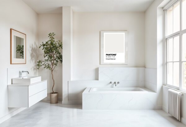 - โดดเด่นไม่หลุดเทรนด์ด้วยสี Cloud Dancer ที่กำลังมาแรงเป็นอันดับหนึ่ง หลังได้รับเลือกจาก Pantone ให้เป็นสีแห่งปี 2026 โดยสีขาวปุยเมฆอบอุ่นช่วยสร้างบรรยากาศแห่งความสงบและโปร่งสบายในห้องน้ำ พร้อมขับให้เฟอร์นิเจอร์และอุปกรณ์ในห้องน้ำมีความโดดเด่นขึ้นไปในตัว