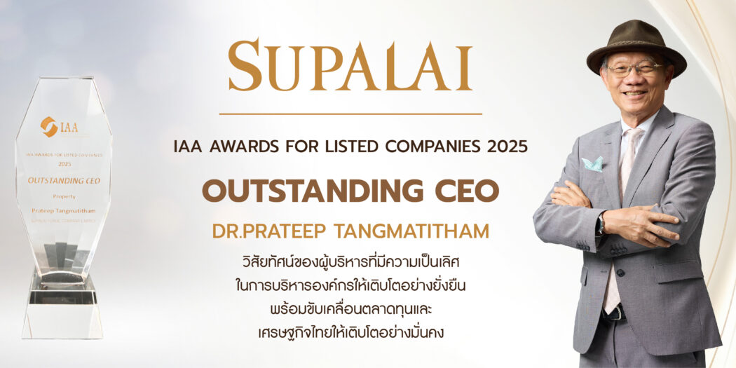 บริษัท ศุภาลัย จำกัด (มหาชน) ผู้นำธุรกิจพัฒนาอสังหาริมทรัพย์ คว้ารางวัลคุณภาพ “Outstanding CEO” ในกลุ่มพัฒนาอสังหาริมทรัพย์ จากเวที IAA Awards for Listed Companies 2025 มอบให้แก่ ดร.ประทีป ตั้งมติธรรม ประธานกรรมการบริหาร รางวัลดังกล่าวมอบให้ผู้บริหารที่มีความเป็นเลิศด้านการบริหารธุรกิจ สะท้อนวิสัยทัศน์และบทบาทสำคัญในการขับเคลื่อนองค์กรให้ประสบความสำเร็จเติบโตอย่างยั่งยืน ตลอดจนมีส่วนร่วมในการพัฒนาเศรษฐกิจและตลาดทุนของประเทศไทยโดยรวม