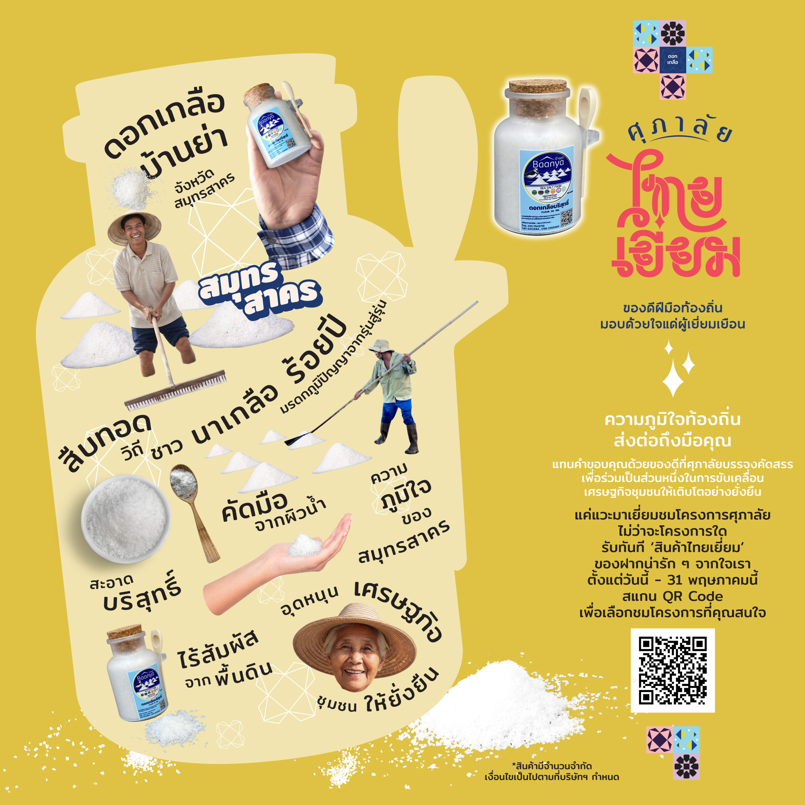ที่ต่อยอดองค์ความรู้พื้นบ้านสู่ผลิตภัณฑ์ดูแลสุขภาพร่วมสมัย ดอกเกลือบ้านย่า จังหวัดสมุทรสาคร ที่สืบทอดวิถีนาเกลือดั้งเดิม กล่องทิชชูจักสานกกจากเสื่อจันทบูร จังหวัดจันทบุรี ที่ผสานงานหัตถกรรมกับดีไซน์เรียบง่ายใช้งานได้จริง และข้าวระยะเม่า จากตำบลสีสุก จังหวัดนครราชสีมา ซึ่งต้องเก็บเกี่ยวในช่วงเวลาที่พอดี อุดมด้วยสารอาหารที่มีประโยชน์