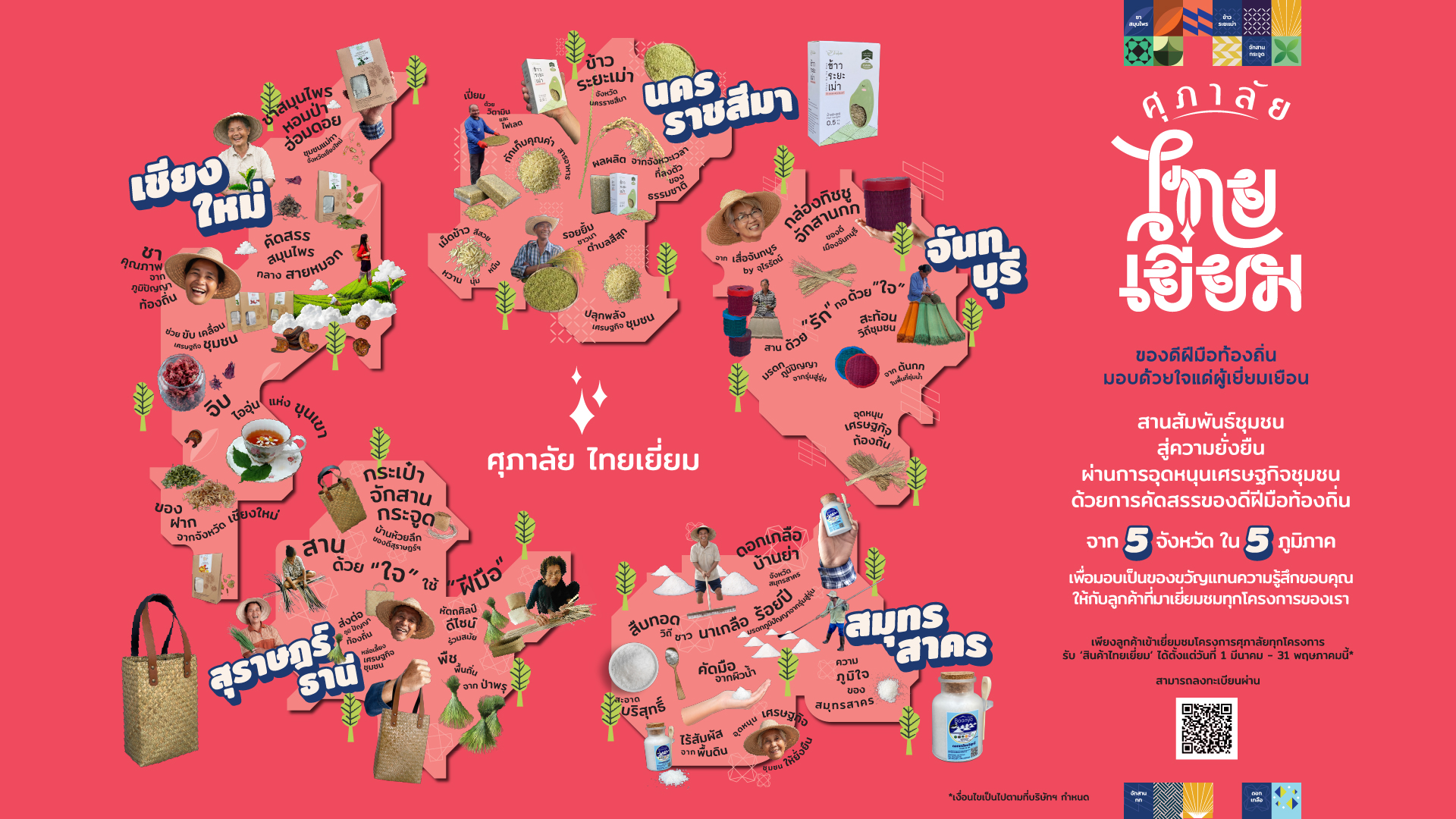 เพราะบ้านที่ดี ไม่ได้เกิดจากการออกแบบพื้นที่อยู่อาศัยเพียงอย่างเดียว แต่เกิดจากความสมดุลระหว่างคุณภาพของบ้านและความเข้มแข็งของชุมชนโดยรอบ บริษัท ศุภาลัย จำกัด (มหาชน) จึงเดินหน้าสนับสนุนเศรษฐกิจชุมชนทั่วประเทศ พร้อมผลักดันแคมเปญ “ศุภาลัย ไทยเยี่ยม” คัดสรรของดีฝีมือท้องถิ่นจาก 5 จังหวัด 5 ภูมิภาค ส่งต่อเป็นของขวัญแทนคำขอบคุณแก่ลูกค้าที่เยี่ยมชมโครงการบ้านและคอนโดมิเนียมศุภาลัยทั่วประเทศ ระหว่างวันที่ 1 มีนาคม–31 พฤษภาคม 2569