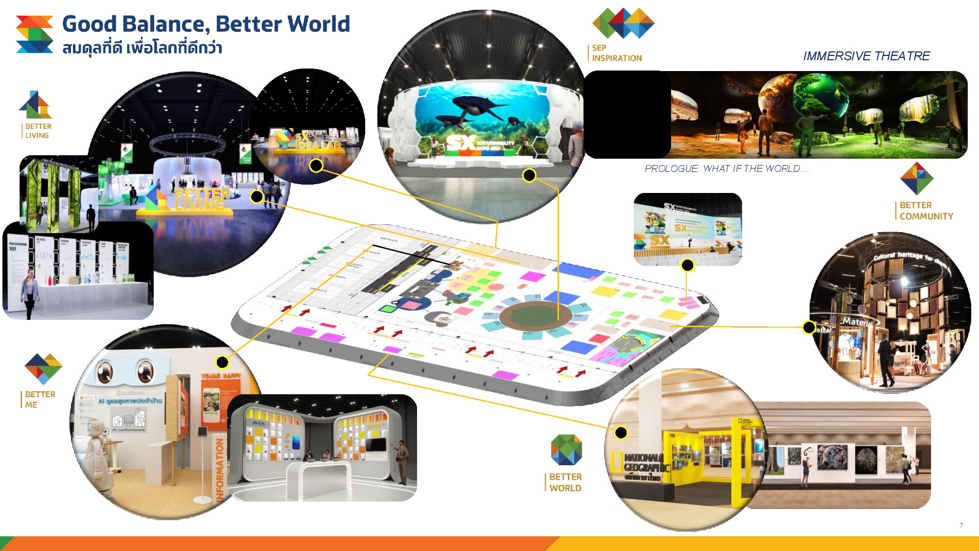 พร้อมกับการร่วมแบ่งปันเพื่อสังคมและโลกที่น่าอยู่ และเพลิดเพลินไปกับนิทรรศการมัลติมีเดียสมดุลที่ดี ดีต่อสุขภาพกายและใจ ดีต่อสิ่งแวดล้อมรอบตัว ดีต่อสังคม ชุมชนเมือง และดีต่อโลกสุดล้ำไปกับที่นวัตกรรมแห่งมัลติมีเดียให้คุณได้สัมผัสโลกเสมือนจริงคู่ขนานแบบ 360 องศา Immersive Experience Pavilion ให้เห็นถึงความเลวร้ายที่ทวีความรุนแรงมากขึ้นเมื่อโลกถูกทำร้าย และคุณภาพชีวิตที่ดีอย่างยั่งยืนที่เราค้นหา จากสารคดีธรรมชาติจาก National Geographic บนจอ 3 มิติขนาดยักษ์