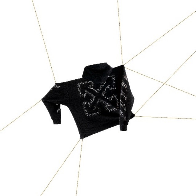 แบรนด์ที่ยืนอยู่ระหว่างจุดตัดของโลกแฟชั่นชั้นสูงและโลกสตรีทแวร์ได้อย่างกล้าหาญและล้ำสมัย ด้วยรากฐานจากวัฒนธรรมสตรีทและสไตล์ที่ไม่เหมือนใคร ฮู้ดดี้รุ่นไอคอนิกของแบรนด์จึงถูกนำมาตีความใหม่ด้วยคริสตัลสวารอฟสกี้กว่า 4,025 เม็ด ที่เรียงร้อยเป็นโลโก้ลูกศรอันเป็นเอกลักษณ์ของแบรนด์ ส่องประกายราวกับท้องฟ้าที่เต็มไปด้วยดวงดาว ด้วยเทคนิคการจัดวางคริสตัลขนาดต่าง ๆ ซึ่งได้รับแรงบันดาลใจจากงานจิวเวลรี่แบบ Pavage อันเลื่องชื่อของสวารอฟสกี้ ทำให้พื้นผิวของผ้าเกิดมิติและรายละเอียดสุดประณีต ถ่ายทอดวิสัยทัศน์อันร่วมสมัยของ Off-White™ ได้อย่างทรงพลัง