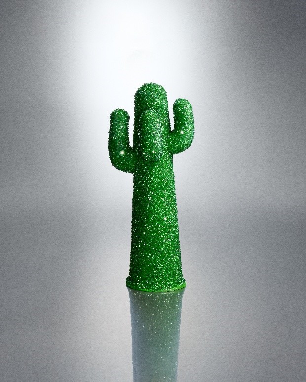 สุดยอดแบรนด์ของตกแต่งบ้านสำหรับนักสะสม นำเสนองานดีไซน์ที่ถ่ายทอดเสน่ห์ของธรรมชาติได้อย่างไร้ที่ติ สวารอฟสกี้จึงนำความระยิบระยับเข้าไปเติมเต็มให้กับ Guframini CACTUS® ด้วยการประดับคริสตัล Erinite แบบ double-pointed ลงบนพื้นผิวด้วยมืออย่างละเอียดลออ ให้ความรู้สึกราวกับหยดน้ำค้างกลางทะเลทราย นอกจากนี้ยังเพิ่มเท็กซ์เจอร์ให้ผลงานด้วยองค์ประกอบจาก Crystal Rock ที่ช่วยขับเส้นสายโค้งมนของตัวชิ้นงานให้โดดเด่นยิ่งขึ้น กลายเป็นของสะสมสุดพิเศษในขนาดมินิที่ได้แรงบันดาลใจจากราวแขวนเสื้อโค้ทของดีไซเนอร์ชื่อดัง Guido Drocco และ Franco Mello ที่เปิดตัวครั้งแรกในปี 1972 และในครั้งนี้ได้ถูกนำมาตีความใหม่อย่างร่วมสมัยด้วยฝีมือคราฟต์คริสตัลอันประณีตของสวารอฟสกี้อย่างลงตัว