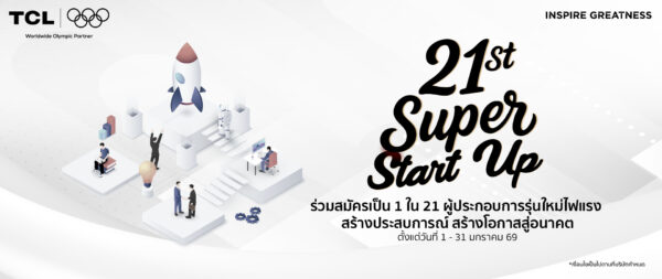 “Super Start Up”  เปิดพื้นที่สนับสนุนผู้ประกอบการรุ่นใหม่ไฟแรง ด้วยการเปิดรับสมัครผู้ที่สนใจเข้าร่วมเป็น 1 ใน 21 ผู้ประกอบการรุ่นใหม่ ที่มีนวัตกรรมและความคิดสร้างสรรค์ สร้างประสบการณ์ และโอกาสทางธุรกิจร่วมกับ TCL เริ่ม ตั้งแต่วันที่ 1 – 31 ม.ค. 2569