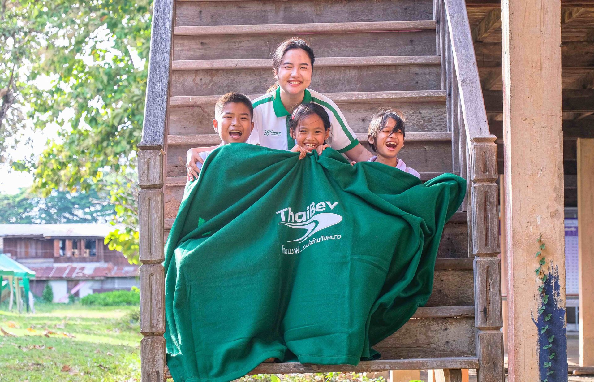 จากจุดเริ่มต้นของโครงการ “ไทยเบฟ…รวมใจต้านภัยหนาว” ของ บริษัท ไทยเบฟเวอเรจ จำกัด (มหาชน) ที่ได้ผสานความร่วมมือกับ กระทรวงมหาดไทย โดยกรมป้องกันและบรรเทาสาธารณภัย พร้อมด้วยภาคีเครือข่าย ทุกภาคส่วน เพื่อร่วมสานต่อปณิธานแห่งการ “ให้” ของคุณเจริญ และคุณหญิงวรรณา สิริวัฒนาภักดี ที่ได้กล่าวไว้ว่า “คนไทย ให้กันได้” อันเปี่ยมไปด้วยความห่วงใยที่มีต่อพี่น้องประชาชนจำนวนมากที่ได้รับความเดือดร้อน และผลกระทบอย่างรุนแรงจากภัยพิบัติหนาวในพื้นที่ภาคเหนือ และ ภาคตะวันออกเฉียงเหนือ นับเป็นเวลา 26 ปี ของคาราวานผ้าห่มผืนเขียวได้ออกเดินทางส่งมอบรอยยิ้ม และความอบอุ่นภายใต้“ผ้าห่มผืนเขียว” ให้ทุกคนได้บรรเทาความหนาวเย็น ปีละจำนวน 200,000 ผืน นับตั้งแต่ปี 2543 เป็นต้นมา จำนวนกว่า 5,200,000 ผืน พร้อมกับมอบโอกาสในการเข้าถึงความช่วยเหลือด้านต่าง ๆ อย่างต่อเนื่อง