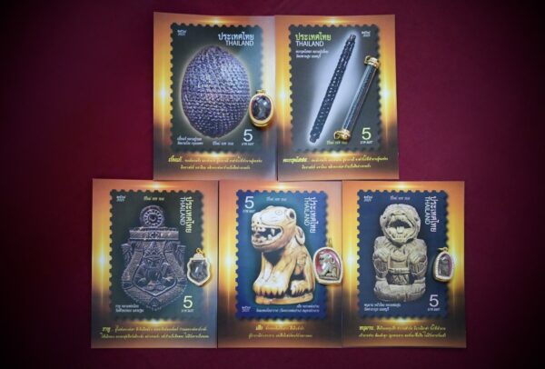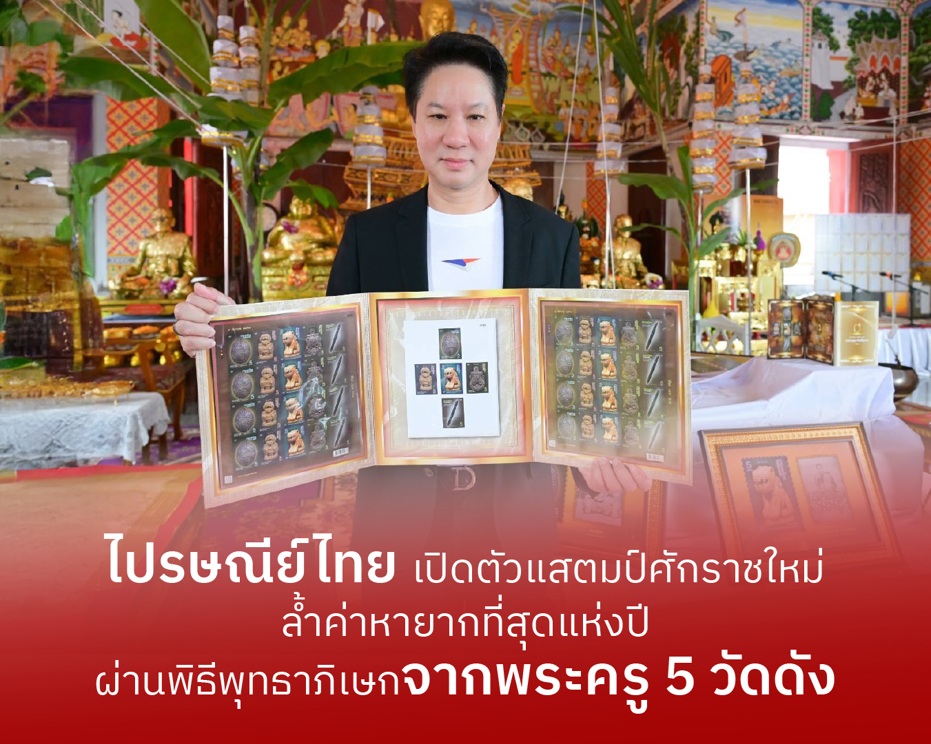 บริษัท ไปรษณีย์ไทย จำกัด เปิดตัวตราไปรษณียากรรุ่นพิเศษ ชุดปีใหม่ 2569 ภาพเบญจภาคีเครื่องราง ที่นำแรงบันดาลใจจากเครื่องรางไทยระดับตำนานทั้งห้า ได้แก่ 1. เสือ หลวงพ่อปาน 2. หนุมาน หลวงพ่อสุ่น 3. เบี้ยแก้ หลวงปู่รอด 4. ราหูกะลาแกะ หลวงพ่อน้อย 5. ตะกรุดมหาโสฬส หลวงปู่เอี่ยม มาถ่ายทอดเป็นผลงานศิลปะบนดวงแสตมป์อย่างวิจิตรงดงาม พร้อมจัดพิธีพุทธาภิเษกในวันที่ 5 พฤศจิกายน 2568 (ขึ้น 15 ค่ำ เดือน 12) ณ วัดมงคลโคธาวาส อำเภอคลองด่าน จังหวัดสมุทรปราการ เพื่อสื่อถึงคุณค่าความเป็นสิริมงคลในวาระขึ้นปีใหม่ ที่สะท้อนแนวคิด “มูเก็ตติ้ง – สื่อแห่งศรัทธา” ที่ไม่เพียงส่งต่อพลังบวก ความเป็นสิริมงคล และความภาคภูมิใจในมรดกทางจิตวิญญาณของไทย แต่ยังออกแบบให้เป็นเครื่องรางแห่งศรัทธาที่ทุกคนสามารถเข้าถึงได้อย่างทั่วถึง ไม่ว่าจะเก็บสะสม ตั้งบูชาในบ้าน หรือพกติดตัวเป็นสัญลักษณ์แห่งความโชคดี แสตมป์ชุดนี้จึงเป็นสื่อกลางที่ผสานศิลปะ วัฒนธรรม และความเชื่อ เข้าด้วยกันอย่างกลมกลืน