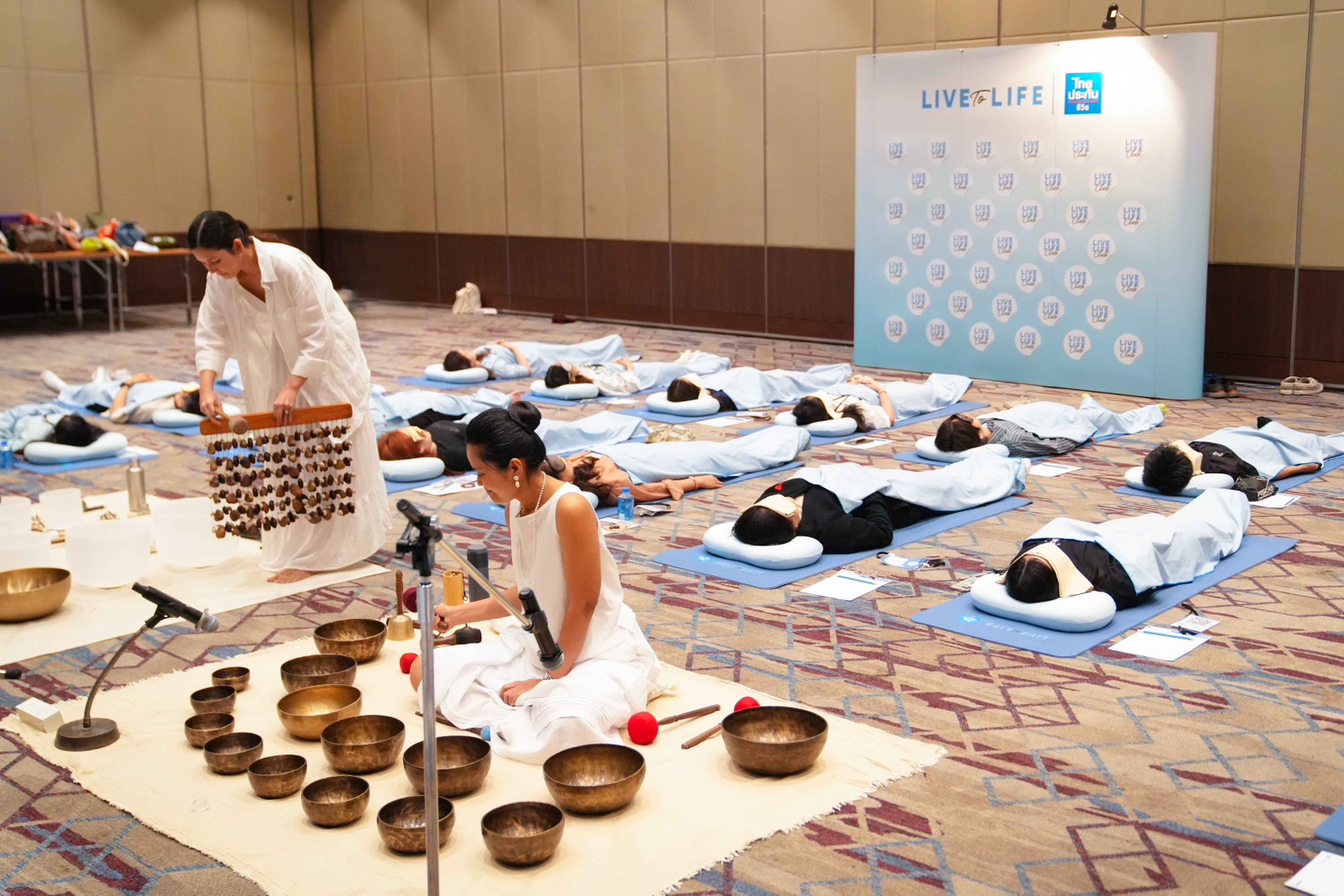 ปิดท้ายด้วยการฟื้นฟู “สุขภาพใจ” ผ่านกิจกรรม Sound Healing โดยโค้ชแจ๊สกี้ จริยา ผู้เชี่ยวชาญการบำบัดด้วยธรรมชาติ และครูสอนด้านสุขภาพแบบองค์รวม ที่พาผู้เข้าร่วมกิจกรรมสู่การผ่อนคลายความเครียดและฟื้นฟูสุขภาพจิตใจให้สงบด้วยเสียงบำบัดจากธรรมชาติ