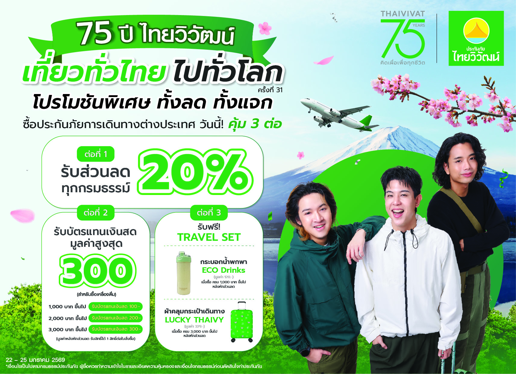 ท่ามกลางสัญญาณฟื้นตัวของอุตสาหกรรมท่องเที่ยวในช่วงต้นปี 2569 บริษัท ประกันภัยไทยวิวัฒน์ จำกัด (มหาชน) ปรับกลยุทธ์เชิงรุก เข้าร่วมงานมหกรรมท่องเที่ยว “เที่ยวทั่วไทย ไปทั่วโลก” ครั้งที่ 31 (Thai International Travel Fair 2026: TITF#31) ซึ่งจัดโดยสมาคมไทยบริการท่องเที่ยว (TTAA) ระหว่างวันที่ 22–25 มกราคม 2569 ณ ศูนย์การประชุมแห่งชาติสิริกิติ์ พร้อมเปิดแคมเปญ “คุ้ม 3 ต่อ” เพื่อกระตุ้นการตัดสินใจเดินทางและการใช้จ่ายตั้งแต่ต้นปี