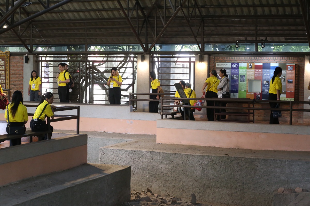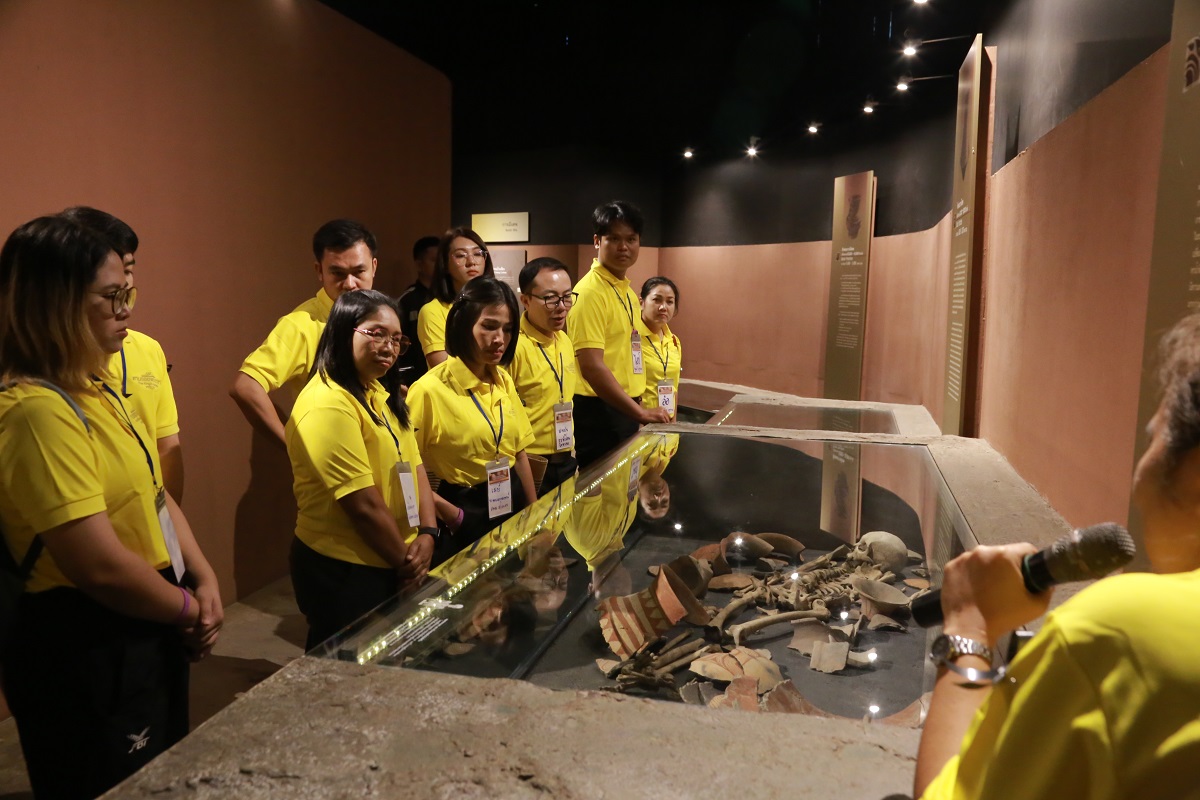 คณะผู้เข้าร่วมโครงการได้เริ่มต้นการเรียนรู้ที่ “พิพิธภัณฑสถานแห่งชาติ บ้านเชียง” เพื่อศึกษาประวัติความเป็นมาของชุมชนโบราณแห่งนี้ ซึ่งมีอายุย้อนไปกว่า 5,000 ปี ภายในจัดแสดงโบราณวัตถุจำนวนมาก ทั้งเครื่องปั้นดินเผาลวดลายงดงาม เครื่องมือหิน เครื่องประดับสำริด และหลักฐานการฝังศพที่สะท้อนถึงความรุ่งเรืองของสังคมเกษตรกรรมยุคแรกเริ่ม ผู้เข้าร่วมยังได้เรียนรู้เรื่องราวเกี่ยวกับพระราชกรณียกิจของในหลวงรัชกาลที่ 9 ที่ทรงเห็นว่าการอนุรักษ์รากเหง้าทางวัฒนธรรมคือการปลูกฝังจิตสำนึกแห่งความพอเพียงและความภาคภูมิใจในความเป็นไทย อันเป็นหัวใจสำคัญของการพัฒนาอย่างยั่งยืนในระยะยาว