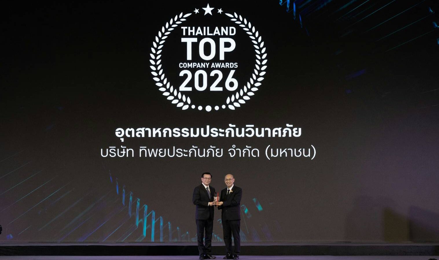 ดร.สมพร สืบถวิลกุล ประธานเจ้าหน้าที่บริหาร บริษัท ทิพย กรุ๊ป โฮลดิ้งส์ จำกัด (มหาชน) และกรรมการผู้จัดการใหญ่ บริษัท ทิพยประกันภัย จำกัด (มหาชน) รับรางวัล “THAILAND TOP COMPANY AWARDS 2026” ประเภทอุตสาหกรรมประกันวินาศภัย ต่อเนื่องเป็นปีที่ 2 จาก ศาสตราจารย์เกียรติคุณ นพ.เกษม วัฒนชัย ในพิธีมอบรางวัล ณ โรงแรมอินเตอร์คอนติเนนตัล กรุงเทพฯ