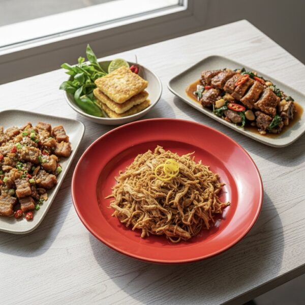 1) Eat — กินให้หมดอย่างมีแผน วางแผนเมนูตั้งแต่ก่อนซื้อผ่านแนวคิดการใช้ให้คุ้มนำของไหว้มา Creative Upcycling เปลี่ยนเป็ดและไก่ไหว้เจ้าเป็นคั่วกลิ้งไก่ฉีกหรือกะเพราเป็ดพะโล้กรอบ นำหมูสามชั้นไปทำหมูกรอบคั่วพริกเกลือ หรือแปรรูปขนมเข่งเป็นขนมเข่งชุบไข่ทอด การออกแบบการบริโภคตั้งแต่ต้นทางช่วยยืดอายุวัตถุดิบและลด Food Waste ได้จริง