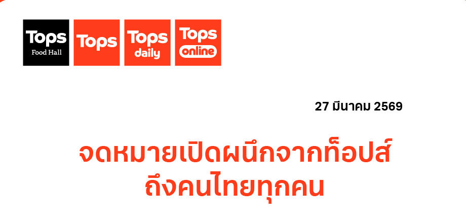 ติดตามรายละเอียดเพิ่มเติมได้ที่ www.TOPS.co.th, เฟซบุ๊ก TOPSThailand และแอปพลิเคชันไลน์ @TOPSThailand