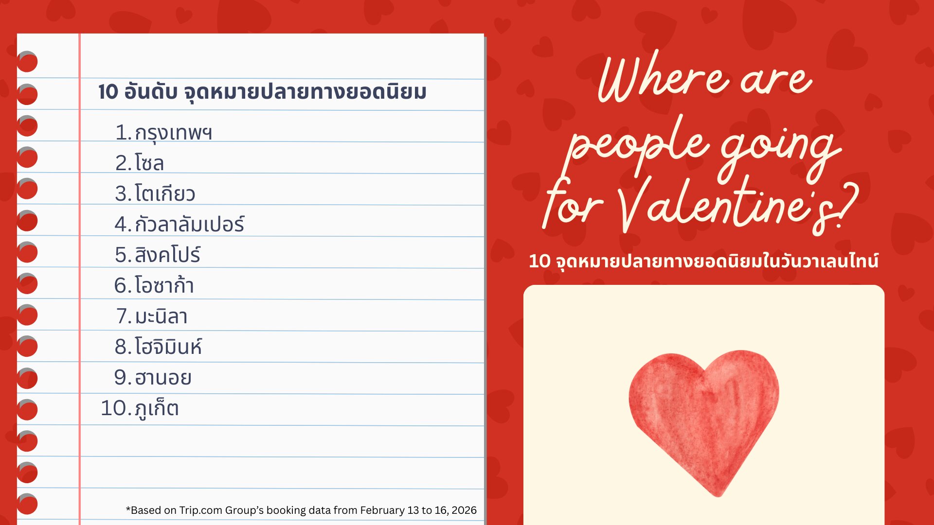 [2] อ้างอิงจากข้อมูลการจองของ Trip.com Group ระหว่างวันที่ 13-16 กุมภาพันธ์ 2569