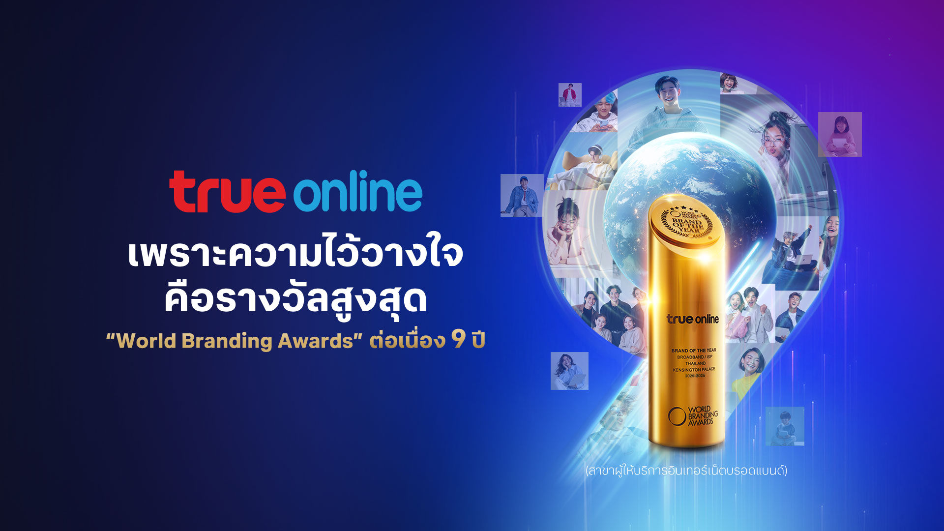 ทรูออนไลน์ ขอบคุณทุกเสียงแห่งความไว้วางใจจากผู้บริโภค ที่สนับสนุนให้ทรูออนไลน์เป็นแบรนด์ที่หนึ่งในใจ จนได้รับการยกย่องให้เป็น “สุดยอดแบรนด์อินเทอร์เน็ตบรอดแบนด์แห่งปีของประเทศไทย ในเวทีระดับโลก – World Branding Awards 2025–2026 ต่อเนื่องเป็นปีที่ 9 ซึ่งจัดขึ้น ณ Osaka City Museum of Fine Arts ประเทศญี่ปุ่น สะท้อนศักยภาพแบรนด์ไทยที่ก้าวสู่มาตรฐานระดับสากลอย่างสง่างาม ท่ามกลางแบรนด์ชั้นนำทั่วโลกกว่า 1,000 แบรนด์ จาก 56 ประเทศที่ร่วมประชันความโดดเด่นด้านการสร้างแบรนด์ นับเป็นอีกความสำเร็จของทรูออนไลน์ที่มุ่งมั่นสร้างสรรค์นวัตกรรม บรอดแบนด์ พร้อมเดินหน้าอัพชีวิตคนไทยให้สมาร์ทยิ่งขึ้น ภายใต้แนวคิด “Your Everyday Connect-Tech” เทคโนโลยีที่เชื่อมต่อชีวิตในทุกวันให้ดียิ่งขึ้น ครอบคลุม 3 มิติ ทั้ง Smart Tech — ใช้เทคโนโลยี AI ดูแลเครือข่ายให้แรง เสถียร และฉลาดกว่าเดิม Smart Solution — โซลูชั่นที่ใช้ Smart Home Connectivity Platform เพื่อสุดยอดประสบการณ์ดิจิทัลในบ้าน และ Smart Service & Privilege — การดูแลที่ใส่ใจให้บริการ และยกระดับคุณภาพชีวิตดิจิทัลของคนไทยให้ “Smart” ในทุกๆวัน