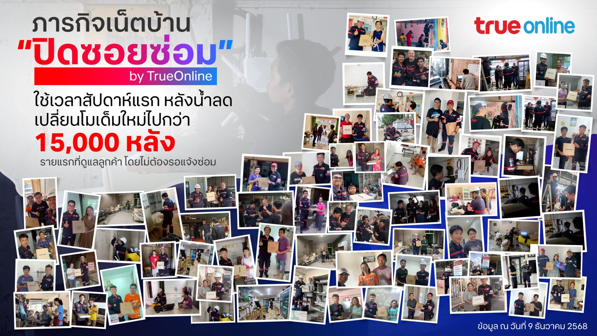 ทรูออนไลน์เดินหน้าภารกิจ “ปิดซอยซ่อม” อย่างต่อเนื่องทันทีตั้งแต่วันแรกที่ระดับน้ำเริ่มลด เพื่อเร่งฟื้นฟูโครงข่ายอินเทอร์เน็ตบ้านของลูกค้าในพื้นที่หาดใหญ่ให้กลับมาใช้งานได้เร็วที่สุด ทีมช่างระดมกำลังจากหลายจังหวัดทั่วประเทศลงพื้นที่เชิงรุก เปลี่ยนโมเด็มใหม่ให้ลูกค้าโดยไม่ต้องรอการแจ้งซ่อม พร้อมตรวจสอบจุดเสียหายทุกพื้นที่ที่ได้รับผลกระทบจากอุทกภัยครั้งนี้  โดยใช้เวลาสัปดาห์แรก หลังน้ำลดเปลี่ยนโมเด็มไปแล้วกว่า 15,000 หลัง เพื่อให้ลูกค้าในพื้นที่ประสบภัยกลับมาดำเนินชีวิตสามารถออนไลน์ได้ตามปกติโดยเร็ว และขอแจ้งลูกค้าที่สมัครบริการทรูออนไลน์พร้อมแพ็กเกจประกันภัยบ้านว่า สามารถยื่น