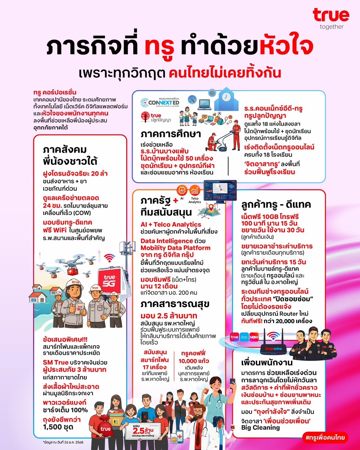 ทรู คอร์ปอเรชั่น มุ่งมั่นพัฒนาคุณภาพการใช้งานให้ลูกค้าทรูมูฟ เอช และดีแทคอย่างต่อเนื่อง โดยบริหารคลื่นความถี่ทุกย่านทั้งคลื่นต่ำ-กลาง-สูง ให้เกิดประสิทธิภาพสูงสุด เพื่อยกระดับประสบการณ์ใช้งาน ความครอบคลุม และคุณภาพสัญญาณทั้งในเขตเมือง อาคารสูง ชุมชน พื้นที่ภูมิภาค รวมถึงแหล่งท่องเที่ยวใหม่ๆ พร้อมสนับสนุนการเข้าถึงบริการสื่อสารดิจิทัลอย่างเท่าเทียม และเสริมความแข็งแกร่งโครงสร้างพื้นฐานดิจิทัลของประเทศในระยะยาว ตลอดจนสนับสนุนการขับเคลื่อนเศรษฐกิจดิจิทัลของไทย