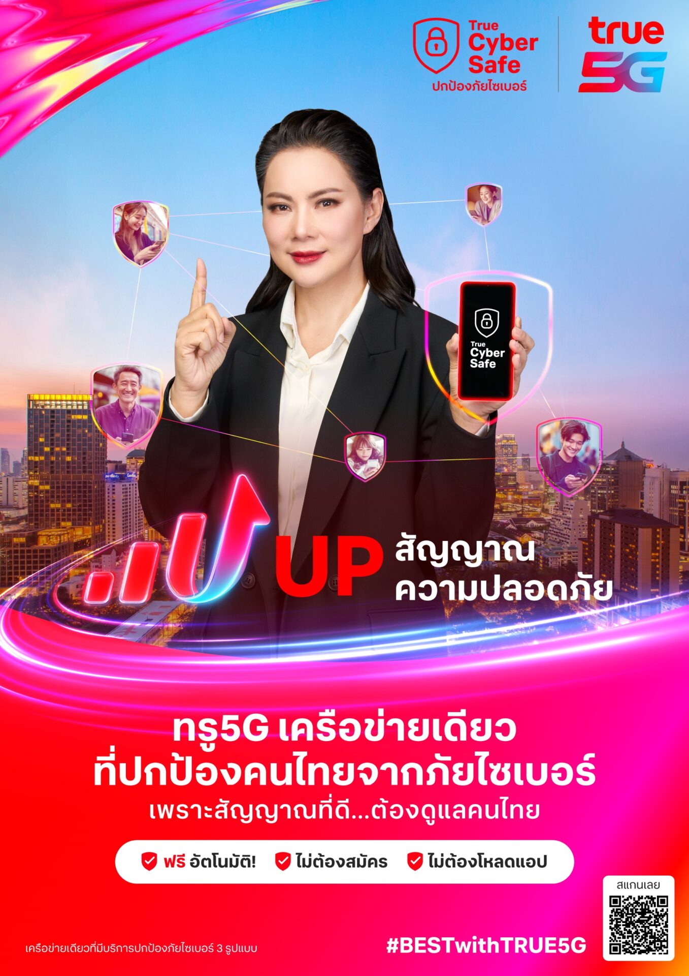 ทรู คือเครือข่ายแรก และเครือข่ายเดียวที่ให้สัญญาณ เร็ว แรง และปกป้องคนไทยจากภัยไซเบอร์ครบทั้ง 3 รูปแบบ ฟรี อัตโนมัติ