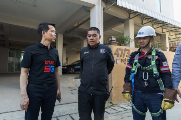 บรรยายภาพ: ธัญพัฒน์ ตั้งทวีทอง หัวหน้าฝ่ายปฏิบัติการรัฐกิจสัมพันธ์ บริษัท ทรู คอร์ปอเรชั่น จำกัด (มหาชน) นำทีมร่วมกับ พ.ต.ท.ตฤณ ลีลานุช สารวัตรกลุ่มงานสนับสนุน คดีเทคโนโลยี บก.ปอท. สอบสวนกลาง และ สำนักงาน กสทช. ร่วมกันเข้าตรวจอาคารต้องสงสัย อ.แม่สาย จ.เชียงรายตัดอุปกรณ์ส่งเน็ตข้ามแดน เร่งขยายผลเครือข่ายปราบมิจฉาชีพ