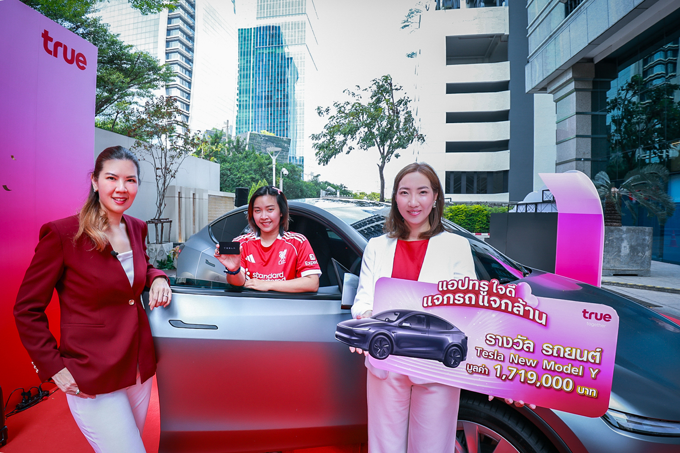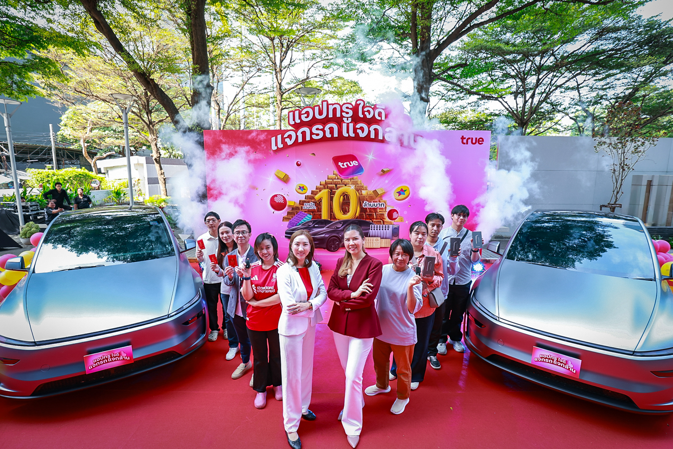 เมื่อไลฟ์สไตล์ดิจิทัลเปลี่ยนเป็นปรากฏการณ์ความสุขระดับเวิลด์คลาส… ทรู คอร์ปอเรชั่น โดย คุณนิธิมนต์ สุธาวิวัฒน์ หัวหน้าฝ่ายดิจิตัลคอมเมิร์ซ และการตลาด พร้อมด้วย คุณสรรค์พิจิตร เอี่ยมชีรางกูร หัวหน้าสายงานบริหารความสัมพันธ์และผสานสิทธิประโยชน์ลูกค้า ร่วมส่งมอบกุญแจสู่ยานยนต์แห่งอนาคต Tesla New Model Y มูลค่า 1.719 ล้านบาท จำนวน 2 คัน ให้แก่ คุณสุภารี กัลยาณพันธ์  และ  คุณอัญเชิญ นิยมทัศน์ ผู้โชคดีที่เปลี่ยนการใช้งาน แอปทรู ในชีวิตประจำวันให้กลายเป็นรางวัลใหญ่จากแคมเปญ “แอปทรูใจดี แจกรถ แจกล้าน” พร้อมขนทัพรางวัลอื่น ๆ ทั้งทองคำแท่ง และสมาร์ทโฟนรุ่นเรือธง รวมมูลค่ากว่า 10 ล้านบาท โดยแคมเปญนี้ได้รับกระแสตอบรับอย่างล้นหลาม ซึ่งสะท้อนความสำเร็จของการยกระดับบริการผ่าน “แอปทรู” ที่เกิดจากการวิเคราะห์พฤติกรรมลูกค้าเชิงลึก จนตกผลึกเป็นศูนย์รวมบริการที่ ‘รวมทุกเรื่อง ครบจบ ในที่เดียว’ พร้อมตอบโจทย์ทุกไลฟ์สไตล์ให้ สะดวก รู้ใจ โดนใจ และสบายใจ ยิ่งกว่าเดิม