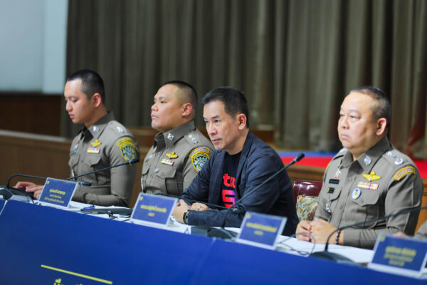 บรรยายภาพ: นายมนตรี สถาพรกุล หัวหน้าฝ่ายคุ้มครองข้อมูลส่วนบุคคล บริษัท ทรู คอร์ปอเรชั่น จำกัด (มหาชน) ตัวแทนบริษัทฯ ร่วมให้ข้อมูลเชิงเทคนิคและประสานความร่วมมือภายใต้กรอบกฎหมายที่เกี่ยวข้องกับ พล.ต.ท.ณัฐศักดิ์ เชาวนาศัย ผู้บัญชาการตำรวจสอบสวนกลาง (CIB) และ พล.ต.ต.ชนันนัทธ์ สารถวัลย์แพศย์ ผบก.ปอท. ในการบุกจับแก๊งคอลเซ็นเตอร์ จังหวัดสระแก้ว จากการตรวจพบพฤติกรรมผิดปกติจากการใช้งานมือถือโดยระบบเฝ้าระวังเครือข่ายอัจฉริยะของทรู