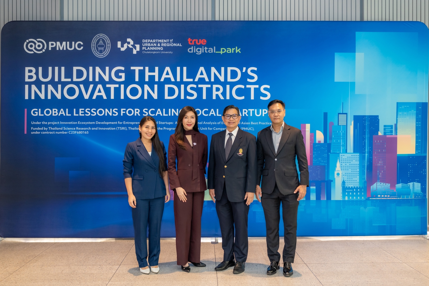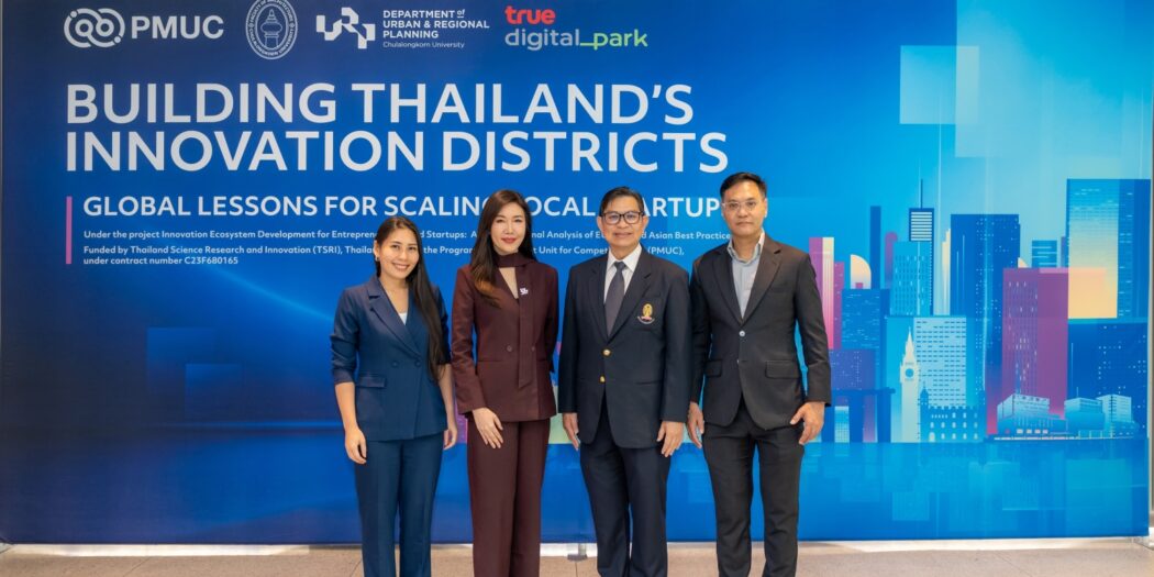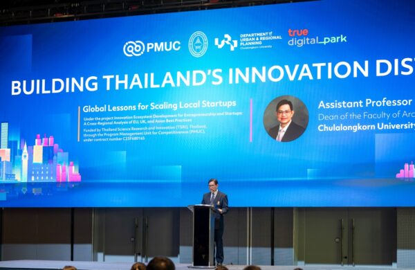 จุฬาลงกรณ์มหาวิทยาลัย โดย คณะสถาปัตยกรรมศาสตร์ และ ศูนย์บริการวิชาการแห่งจุฬาลงกรณ์มหาวิทยาลัย ลงนามบันทึกข้อตกลงความร่วมมือ กับ ทรู ดิจิทัล พาร์ค ศูนย์กลางเทคและสตาร์ทอัพที่ใหญ่ที่สุดในเอเชียตะวันออกเฉียงใต้ ประกาศผนึกพลังขับเคลื่อนโครงการ “การพัฒนาย่านนวัตกรรมสนับสนุนผู้ประกอบการสตาร์ทอัพ ผ่านการเรียนรู้โมเดลระดับโลก” ดึงศักยภาพด้านงานวิจัยโดยเฉพาะในระดับมหาวิทยาลัย เชื่อมโยงเครือข่ายผู้ประกอบการ นักลงทุน และองค์กรธุรกิจทั้งในและต่างประเทศภายใต้ระบบนิเวศสตาร์ทอัพที่สมบูรณ์แบบครบวงจร เสริมด้วยองค์ความรู้ระดับสากลจากพันธมิตรองค์กรชั้นนำใน 3 ประเทศ คือ เนเธอร์แลนด์ สหราชอาณาจักร และ สิงคโปร์ เปิดฉากทัศน์ใหม่ในการแลกเปลี่ยนประสบการณ์และความเชี่ยวชาญ การพัฒนาโครงการร่วม และการเชื่อมโยงตลาดและแหล่งทุนระดับภูมิภาคและระดับโลก มุ่งศึกษา 3 เทคโนโลยียุทธศาสตร์ ได้แก่ อาหารแห่งอนาคต (Future Food) สุขภาพ (Health Tech) และ สิ่งแวดล้อม (Green Innovation) ตั้งเป้าเปลี่ยนงานวิจัยเชิงลึก สู่การสร้างพื้นที่เศรษฐกิจนวัตกรรมที่จับต้องได้จริง
