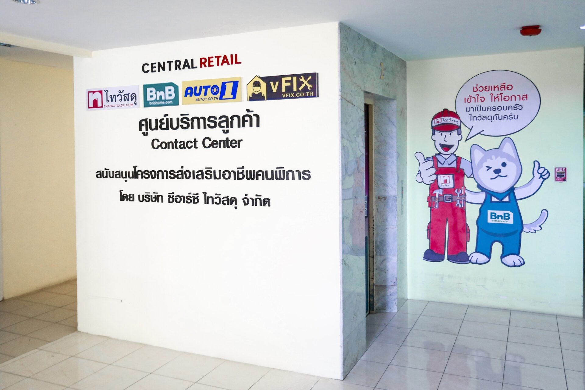 นายธนวัฒน์ จิรังคพัฒน์ กรรมการผู้จัดการใหญ่ บริษัท ซีอาร์ซี ไทวัสดุ จำกัด ในเครือเซ็นทรัล รีเทล กล่าวว่า ไทวัสดุเริ่มวางรากฐานการจ้างงานผู้พิการตั้งแต่ปี 2557 ผ่านหลักสูตร CRC Thaiwatsadu Contact Center Training โดยร่วมมือกับ มูลนิธิพระมหาไถ่เพื่อการพัฒนาคนพิการ ตั้งแต่ปี 2558 จัดตั้งศูนย์ฝึกอาชีพ Contact Center ณ มูลนิธิพระมหาไถ่ฯ จังหวัดชลบุรี จากจุดเริ่มต้นที่มีผู้เข้าฝึกอบรมเพียง 15 คน ได้ขยายผลสู่การจ้างงานจริงกว่า 35 คน ระหว่างปี 2559–2563 และต่อยอดเปิด “ศูนย์บริการลูกค้า Contact Center สนับสนุนโครงการส่งเสริมอาชีพคนพิการ” ของไทวัสดุอย่างเป็นทางการในปี 2564 ซึ่งปัจจุบัน สามารถรองรับการจ้างงานได้มากถึง 70 อัตรา โดยในปี 2568 นี้ มีผู้พิการกว่า 63 คน ที่ได้รับการจ้างงานในฐานะพนักงานประจำ พร้อมรับค่าจ้าง โบนัส และสวัสดิการเทียบเท่าพนักงานทั่วไป