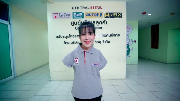 ทางด้าน นางสาวธัญญรัตน์ มาอุ้ย ตัวแทนพนักงาน Contact Center ไทวัสดุ กล่าวว่า การได้รับโอกาสให้เข้ามาทำงานเป็นเจ้าหน้าที่บริการลูกค้าที่ศูนย์ Contact Center ของไทวัสดุ ทำให้ชีวิตของตนและยายดีขึ้นมาก มีรายได้มั่นคง ดูแลคนในครอบครัวได้ ไม่ต้องคอยกังวลเรื่องอนาคตอีกต่อไป สิ่งที่สำคัญที่สุด ไม่ใช่แค่เรื่องรายได้ แต่คือการได้รับการยอมรับจากเพื่อนร่วมงานที่มองตนเป็นเพื่อนร่วมทีม ไม่ใช่คนพิการ ทำให้รู้สึกว่าชีวิตมีคุณค่าและอยากตั้งใจทำงานนี้ต่อไปให้ดีที่สุด ไทวัสดุ เป็นองค์กรที่ให้โอกาสแก่ผู้พิการและเชื่อในศักยภาพของผู้พิการดังเช่น ตัวของเธอเองที่ แม้จะไม่มีแขน แต่ได้พิสูจน์ศักยภาพและความสามารถของตนเองด้วยการใช้สองเท้าในการพิมพ์คอมพิวเตอร์และทำงานได้เหมือนคนที่มีร่างกายปกติทั่วไป