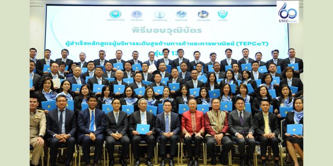 ศูนย์บริการวิชาการ มหาวิทยาลัยหอการค้าไทย จัดพิธีมอบวุฒิบัตรผู้สำเร็จหลักสูตรผู้บริหารระดับสูงด้านการค้าและการพาณิชย์ (TEPCoT) รุ่นที่ 13-14 ขึ้น ภายในงานได้รับเกียรติจาก นายจุรินทร์ ลักษณวิศิษฏ์ รองนายกรัฐมนตรีและรัฐมนตรีว่าการกระทรวงพาณิชย์ ให้เกียรติมาเป็นประธานในพิธี โดยมี นายสนั่น อังอุบลกุล นายกสภามหาวิทยาลัย และประธานสภาหอการค้าแห่งประเทศไทย, รศ.ดร.ธนวรรธน์ พลวิชัย อธิการบดีมหาวิทยาลัยหอการค้าไทย และผู้เข้าร่วมอบรมในหลักสูตรฯ ทั้งรุ่น 13-14 เข้าร่วมในพิธี ณ กระทรวงพาณิชย์ สนามบินน้ำ เมื่อวันที่ 23 มกราคม 2566
