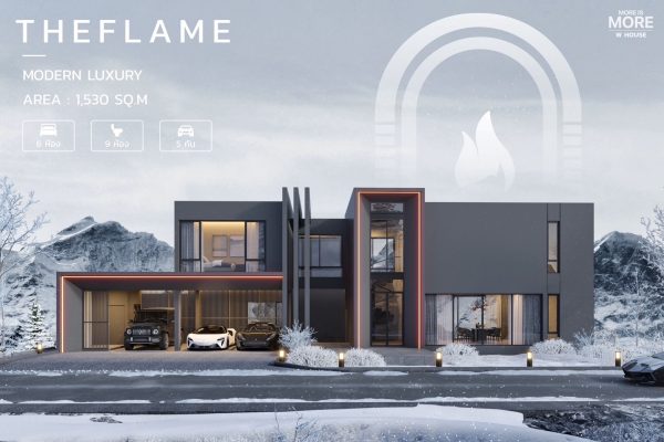 “THE FLAME” คฤหาสน์ 4 ชั้น สไตล์ Super Modern Luxury ขนาด 1,530 ตร.ม. จำนวน 6 ห้องนอน 9ห้องน้ำ และ 5 ที่จอดรถ ซึ่งได้แรงบันดาลใจจากเปลวไฟ ใช้โทนสีดำและไฟแดงส้มสร้างเอกลักษณ์ให้บ้านดูดุดัน หรูหรา และทรงพลัง พร้อมฟังก์ชันที่จัดจังหวะการใช้ชีวิตแบบไดนามิก